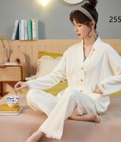 パジャマ着 女 純綿 長袖 日系 プリンセス風 大きいサイズ ホームスーツ