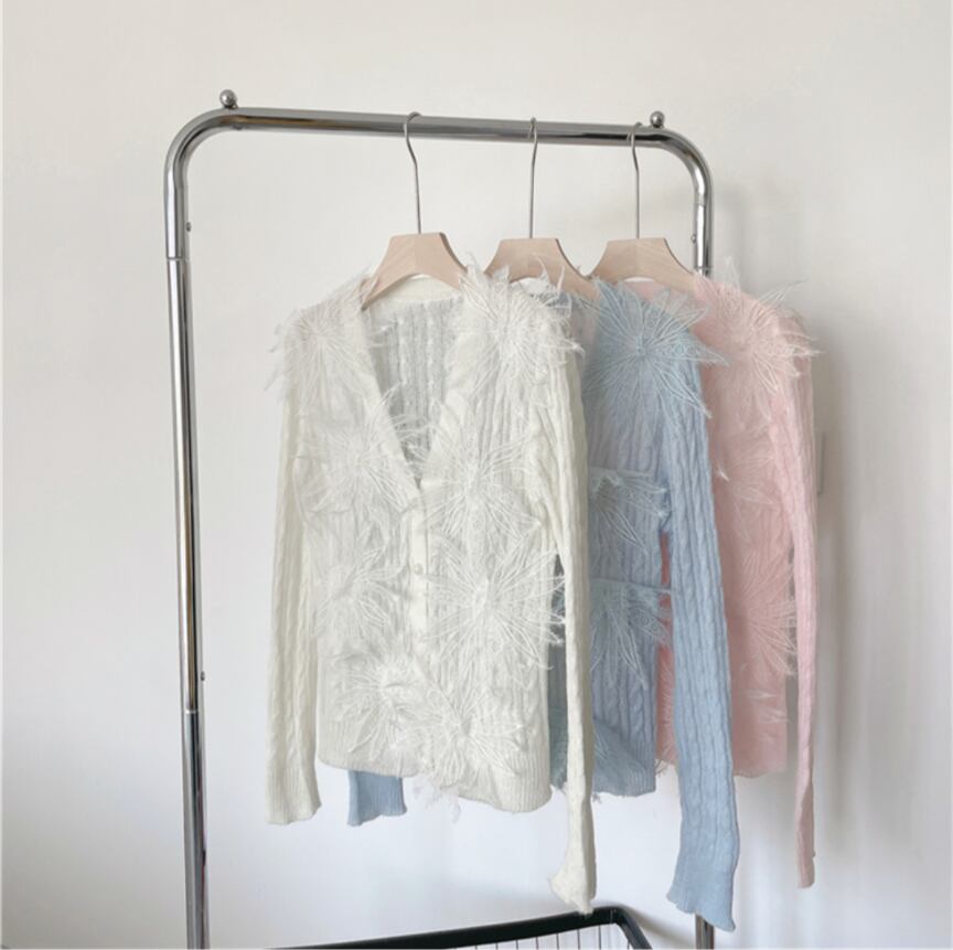 INSスタイル 2022年春夏 新しい ししゅう お花 ステッチ 編み物 カーディガントップス