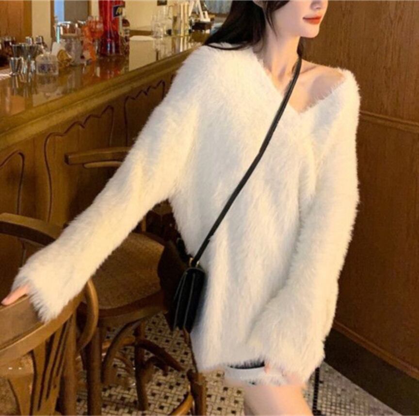 ふわふわ セーター 2024年秋冬新作 ニット ニットトップス レディース セーター Vネック 可愛い