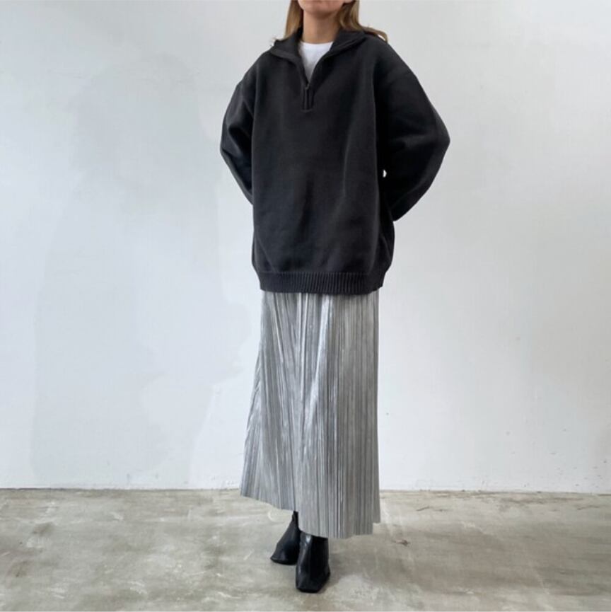 ロングシーズン着れるポリ100素材のニットPO ハーフジップがトレンドライクな一枚 モデル身長:161cm 透け感なし 品番:4071