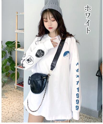 ロングTシャツ長袖 レディース ロゴプリントトレーナー カジュアル ゆるチュニックトップス ゆったり ス